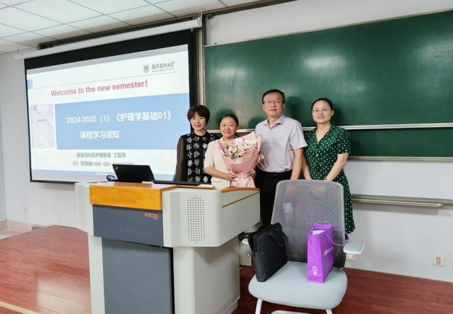 马俊书记一行向《护理学基础》丁亚萍老师赠送花束