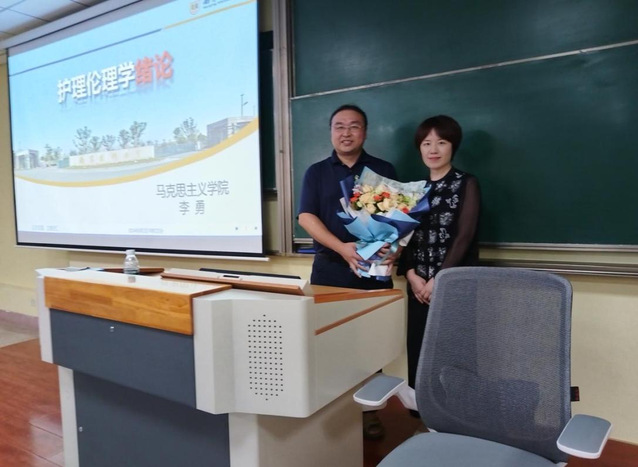 嵇艳副院长向《护理伦理学》李勇老师赠送花束