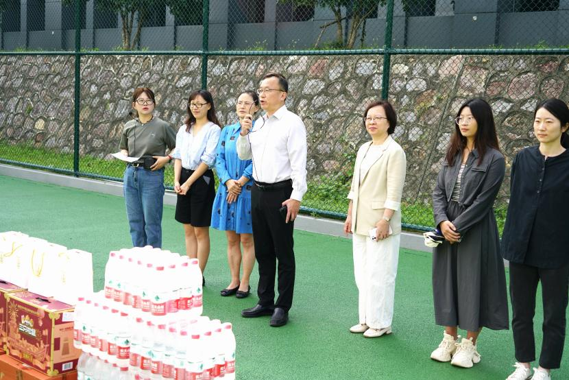 9月25日上午10点,米兰(中国)让运动改变生活党委书记马俊,米兰(中国)让运动改变生活院长许勤,副书记、副院长高兰天,学生工作办公室主任顾莹,辅导员刘一帆和各班兼职班主任们慰问2024级军训新生及承训教官。