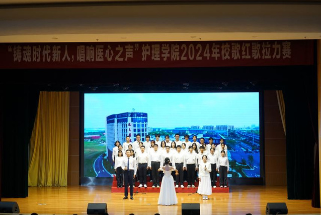 护理1班首先带来歌曲《我们走在大路上》,国逢盛世生机勃勃,校逢盛世欣欣向荣,在中国共产党的带领下,我们始终走在大路上,继往开来,再创辉煌。