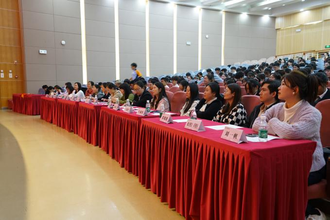 比赛尾声,校团委、文化艺术教育中心胡菁菁老师针对本次比赛做出了专业点评,她从前期选曲、音调把控、服装造型及舞台表现等多方面对各班表演进行点评,并高度肯定了本次比赛中全体同学的积极表现。