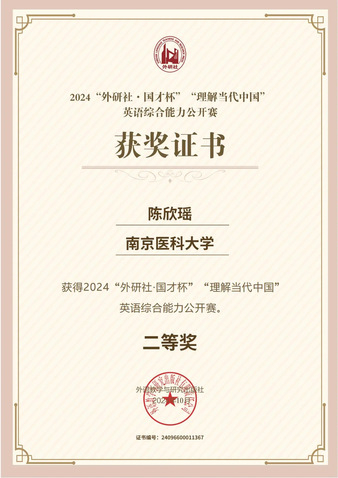 此次获奖不仅是对陈欣瑶同学辛勤努力的肯定,也彰显了米兰体育在英语教学及综合素质教育方面的卓越成果。希望通过此次比赛,切实提升我院学子语言能力和文化素养,增加对当代中国的深刻理解,为未来的发展打下坚实的基础。