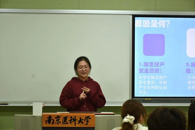 护理5班的何静雯同学巧妙运用现实事例,提醒同学们谨慎保管好个人财物,重视安全防护。