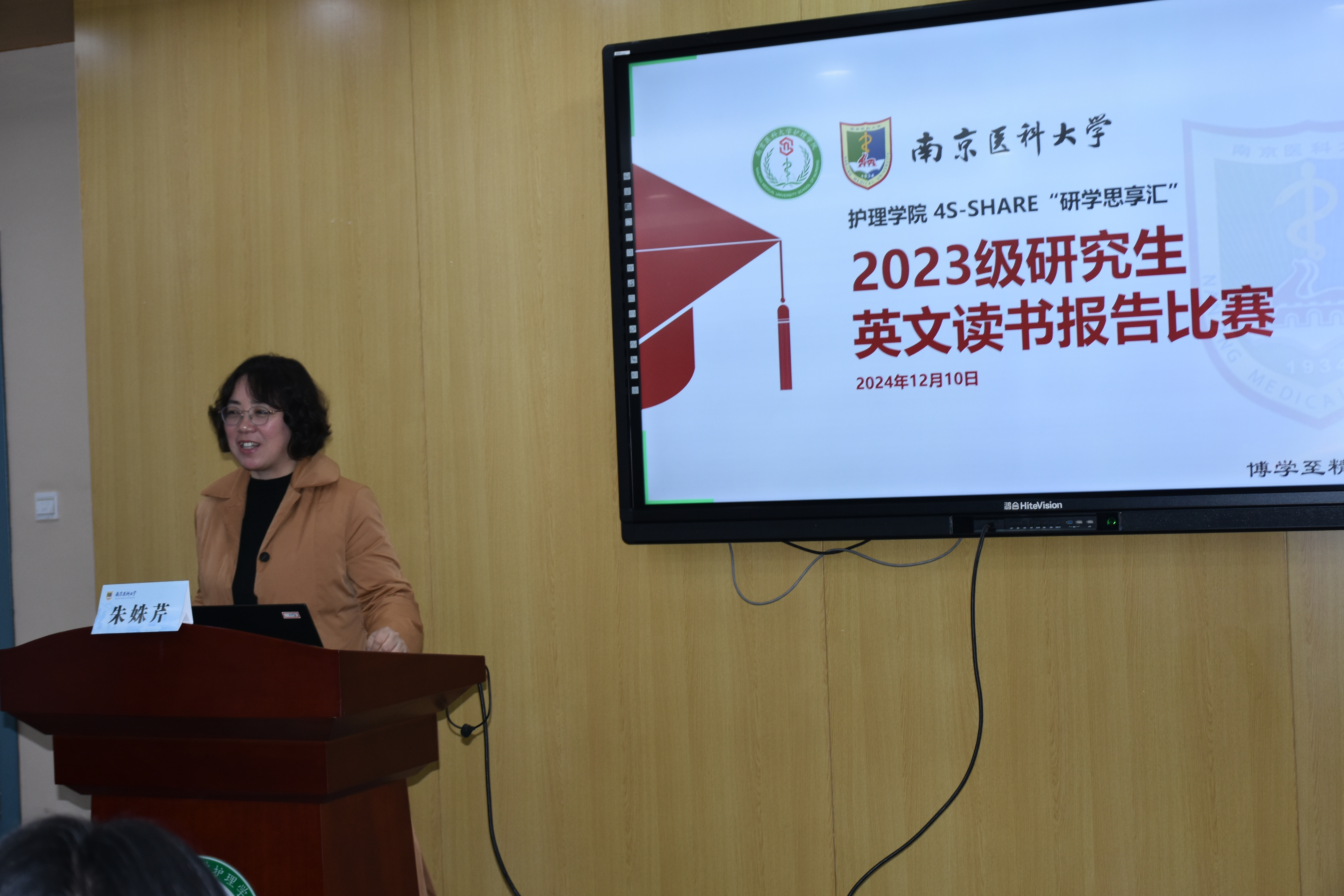 朱姝芹副院长为比赛致辞,她指出研学·思享汇系列活动为同学们提供了交流思想、分享经验的宝贵机会,也反映了学院对研究生培养的要求。希望大家能够充分利用此次机会,展示出优秀的科研素养,以开放的心态拥抱友情,尽情交流,共同创造一个和谐、富有成效的科研环境。