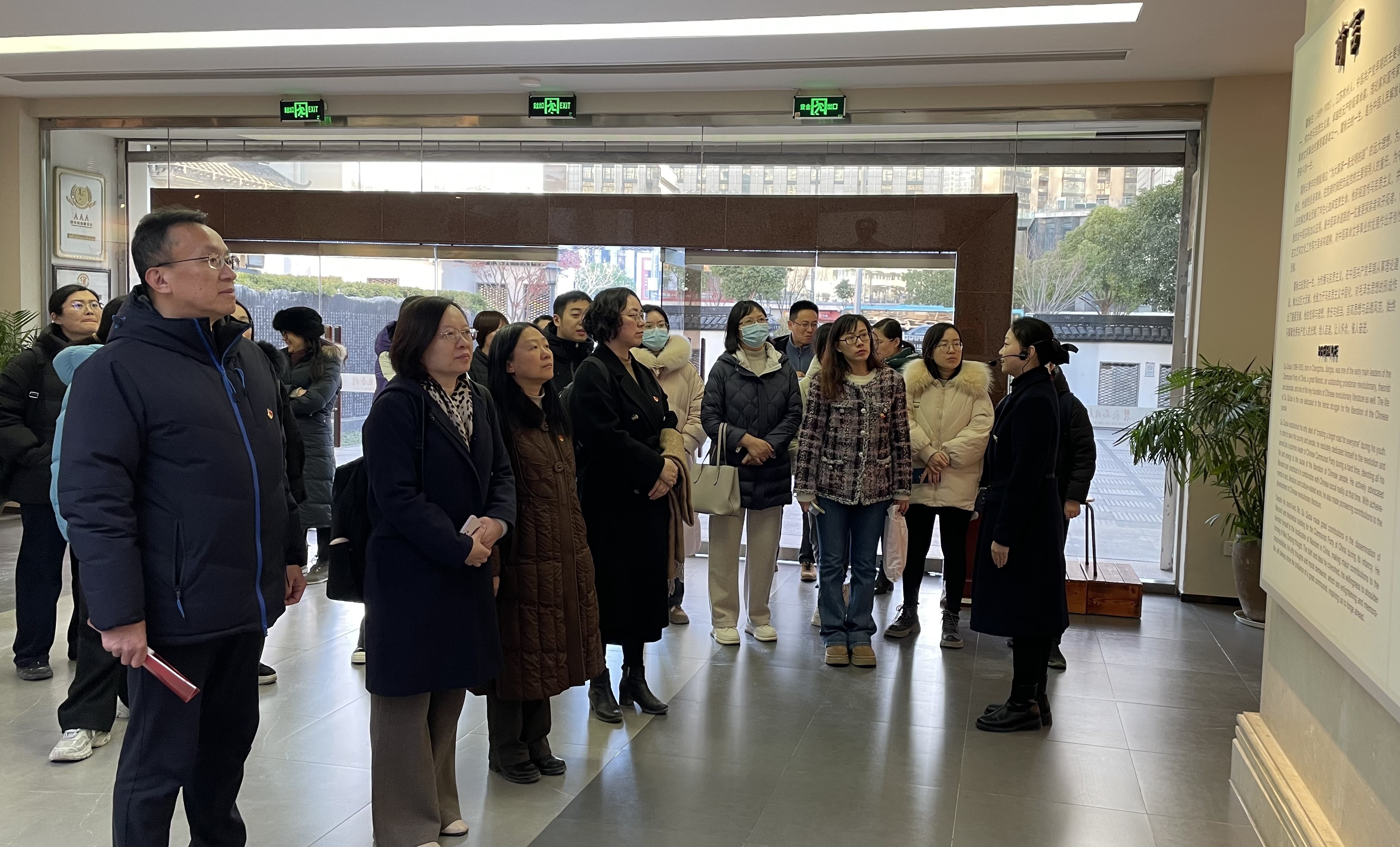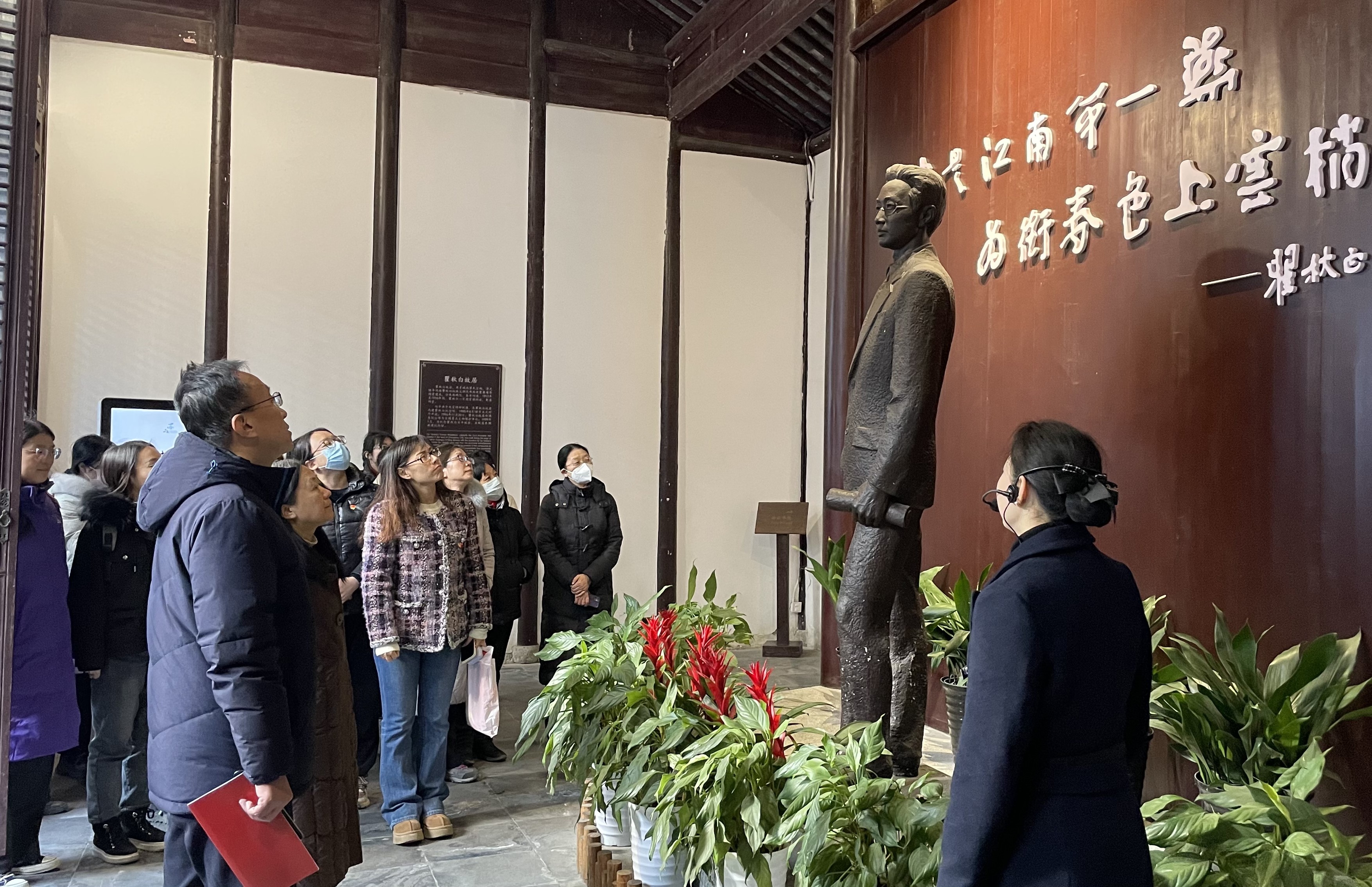 后续,为了进一步增强大家的使命感与责任感,在专业讲解员的引领下,支部教师集体参观了瞿秋白故居与纪念馆。瞿秋白故居原为瞿氏宗祠,是瞿秋白17岁离开常州前最后生活的地方,而纪念馆则通过丰富的实物、图片和多媒体展示,全面、公正、科学地展示了瞿秋白同志革命、光辉的一生。从“少年苦读觅渡”的壮志雄心,到“探索革命道路”的上下求索,再到“苏区最后斗争”的慨然就义,大家深刻感受到了瞿秋白同志为党为民、守誓践诺的至诚精神。党员们纷纷表示,要在今后的工作与生活中传承红色文化,争做时代先锋,把对瞿秋白精神的感悟化为努力工作的驱动力,继承革命传统,激发奋进力量,做新征程上的奋斗者。