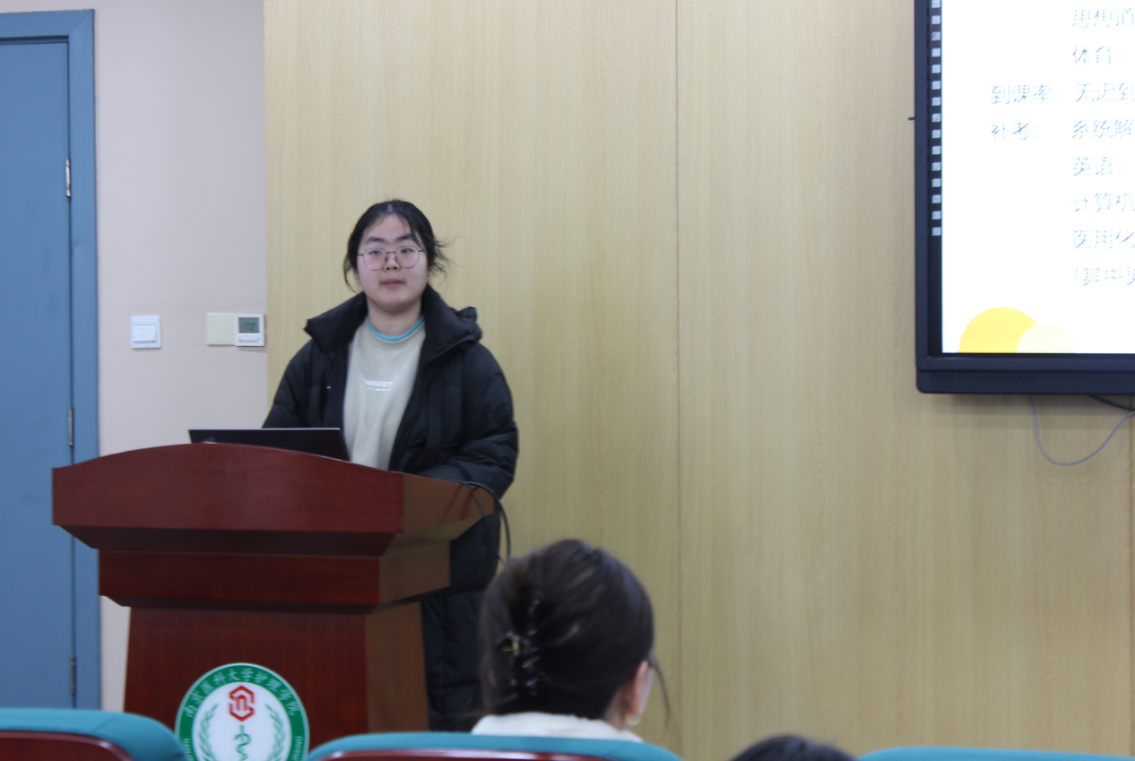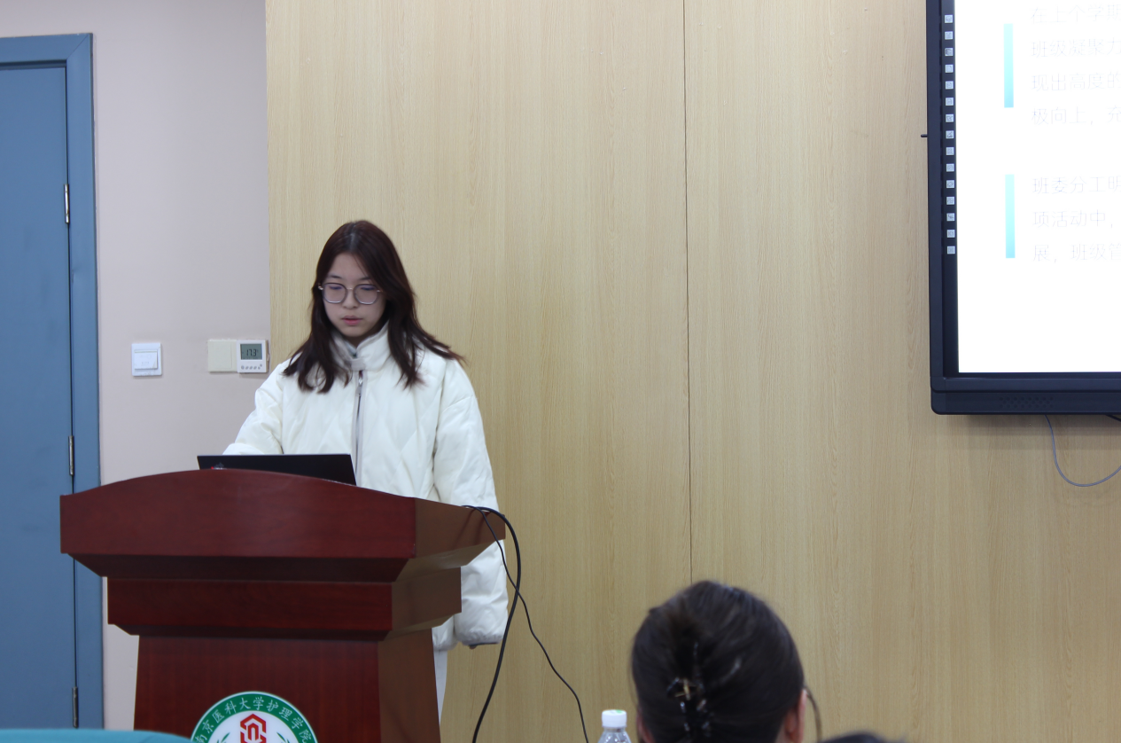 “我们班贯彻从班委自身做强,到带动全班,建设‘有灵魂’的班级”。”树班风,浓学风,部分班级激励引导班级成员在学科竞赛、志愿服务、创新创业实践中遍地开花,各班班长就班级的综合建设发表自己的看法。“强大的组织力与凝聚力是班级的内核。接下来我们班委的集体目标是让班级的挂科人数清零,让同学们学有余力实现综合发展。”24级护理5班班长吉永乐分享了班级团建的素材,也定下了班级的下阶段目标。走心的视频,温暖的笑容,让班级建设有深度,更有温度。
