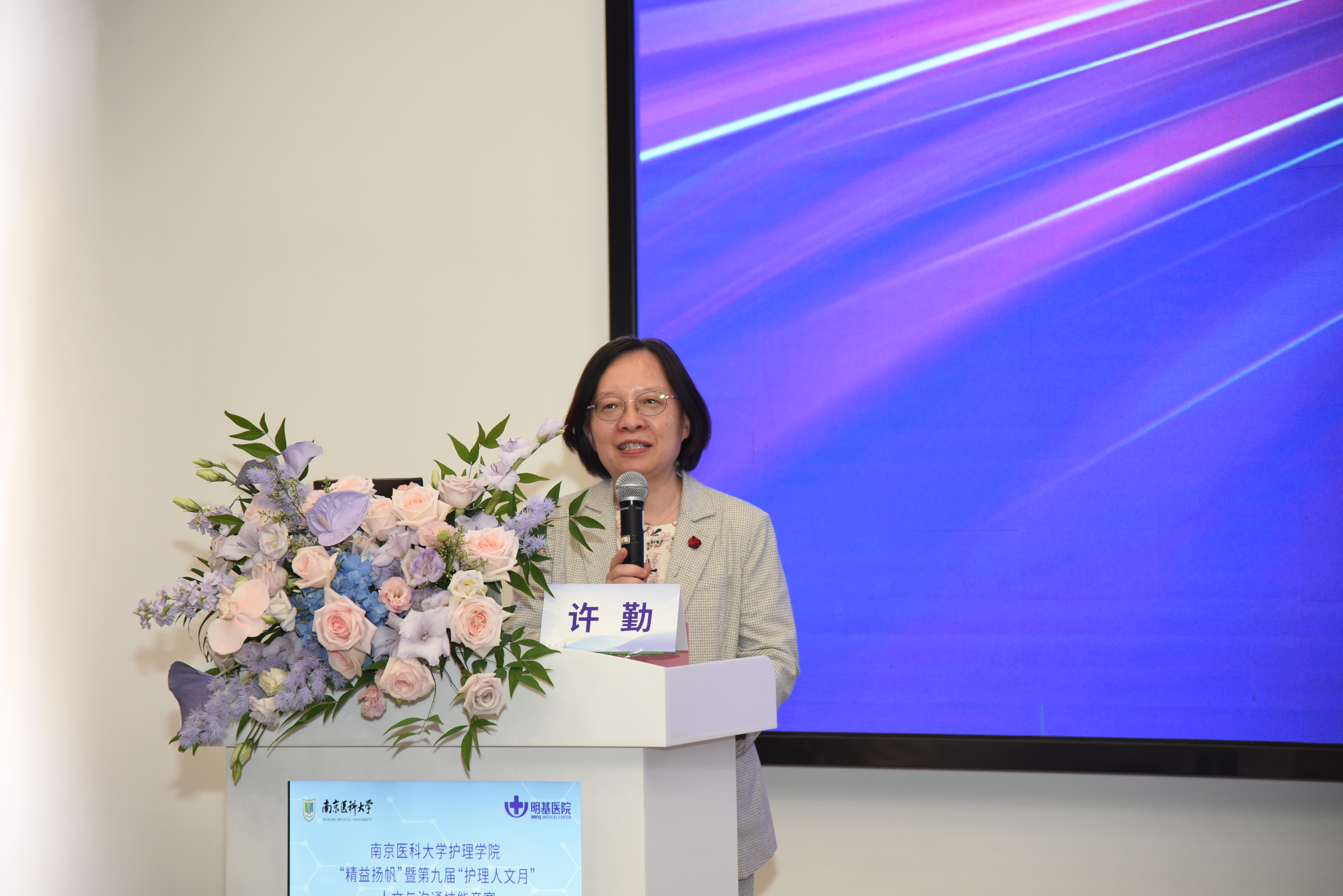 最后,许勤院长对本次竞赛进行了总结,她向南京明基医院的全方位支持、评委专家的专业评判及标准化病人的倾情参与致以诚挚谢意,并特别赞扬72名大一新生以“青涩却真挚”的表现诠释护理人文精神,为赛事注入青春活力。她重申南京明基医院与米兰(中国)让运动改变生活深度合作的价值,称其为培养卓越护理人才的“不竭动力”,并呼吁学生以竞赛为起点,将人文精神升华为职业信仰,在未来的护理征程中“用专业守护生命,用沟通缔造信任”。