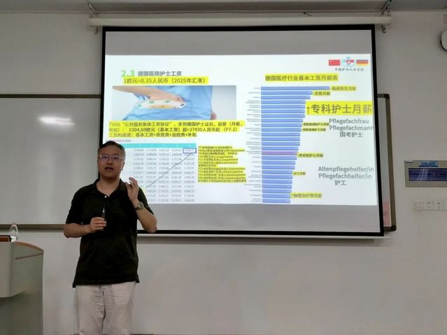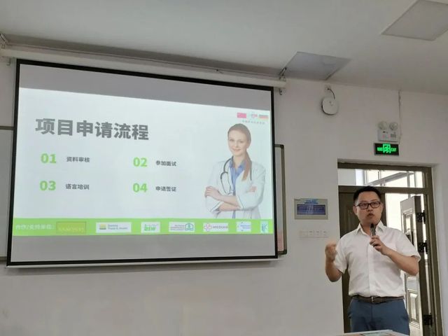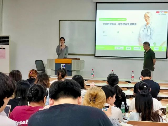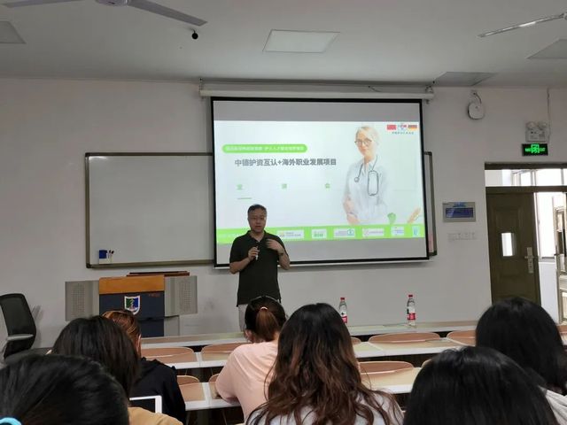 宣讲会上,丁涛老师详细介绍了“德国联邦政府资助+护士人才联合培养项目”,以全球化护理教育视角,围绕德国护理教育体系下的学习、实习及就业等方面展开深入研讨,动员同学们积极参与,携手培养高素质全球化护理人才。