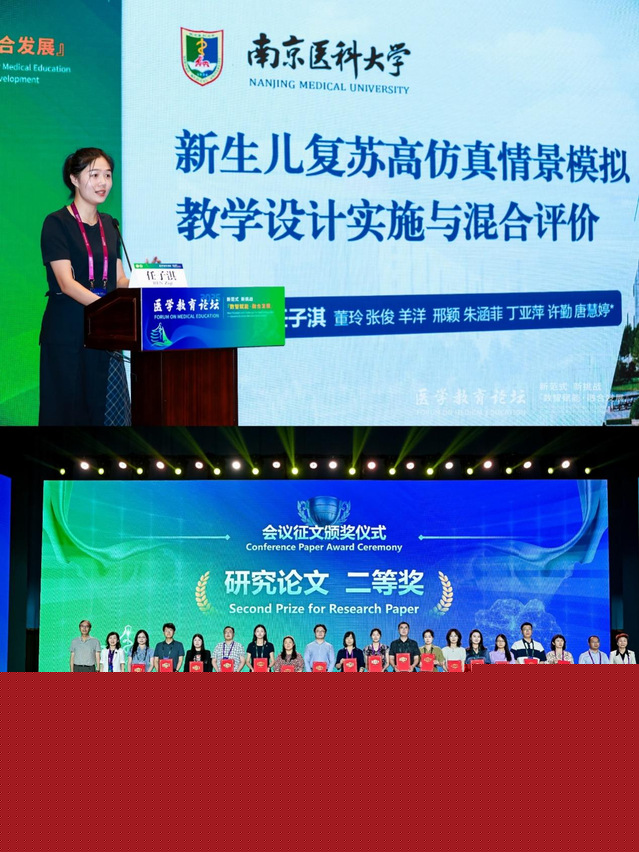 我院情景模拟教研团队任子淇、唐慧婷老师的研究论文《新生儿复苏高仿真情景模拟教学设计实施与混合评价》荣获“研究论文二等奖”,并受邀在“分论坛六:医学模拟教育”进行口头汇报与分享交流。该研究将高仿真模拟教学应用于新生儿复苏教学实践,通过高度还原的临床场景和动态病情变化设计,有效培养了学生的临床思维、团队协作和问题解决能力。研究结果证实,该教学模式不仅实现了理论知识向实践能力的转化,更在培养学生评判性思维、提升职业素养以及融入思政教育方面取得了显著成效。