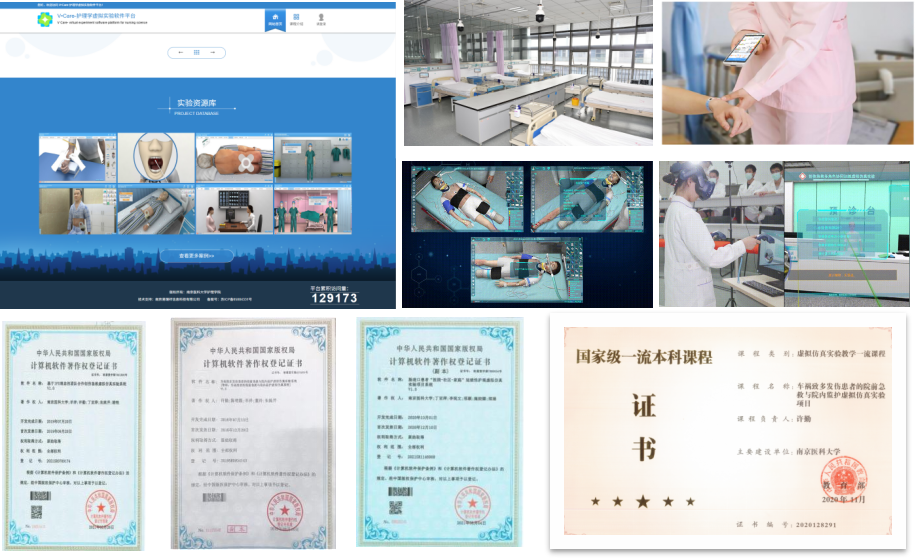 多年来,我院致力于护理教育信息化改革,在虚拟仿真教学硬件环境管理平台和教学资源等方面均取得一定成效。2020年,车祸致多发伤患者的院前急救与院内监护入选首批国家级虚拟仿真实验教学一流本科课程;2022年,创伤急救多角色协同训练入选江苏省首批虚拟仿真实验教学一流本科课程。本次认定是V·Care护理学虚拟仿真实验室收获的又一阶段性成果。