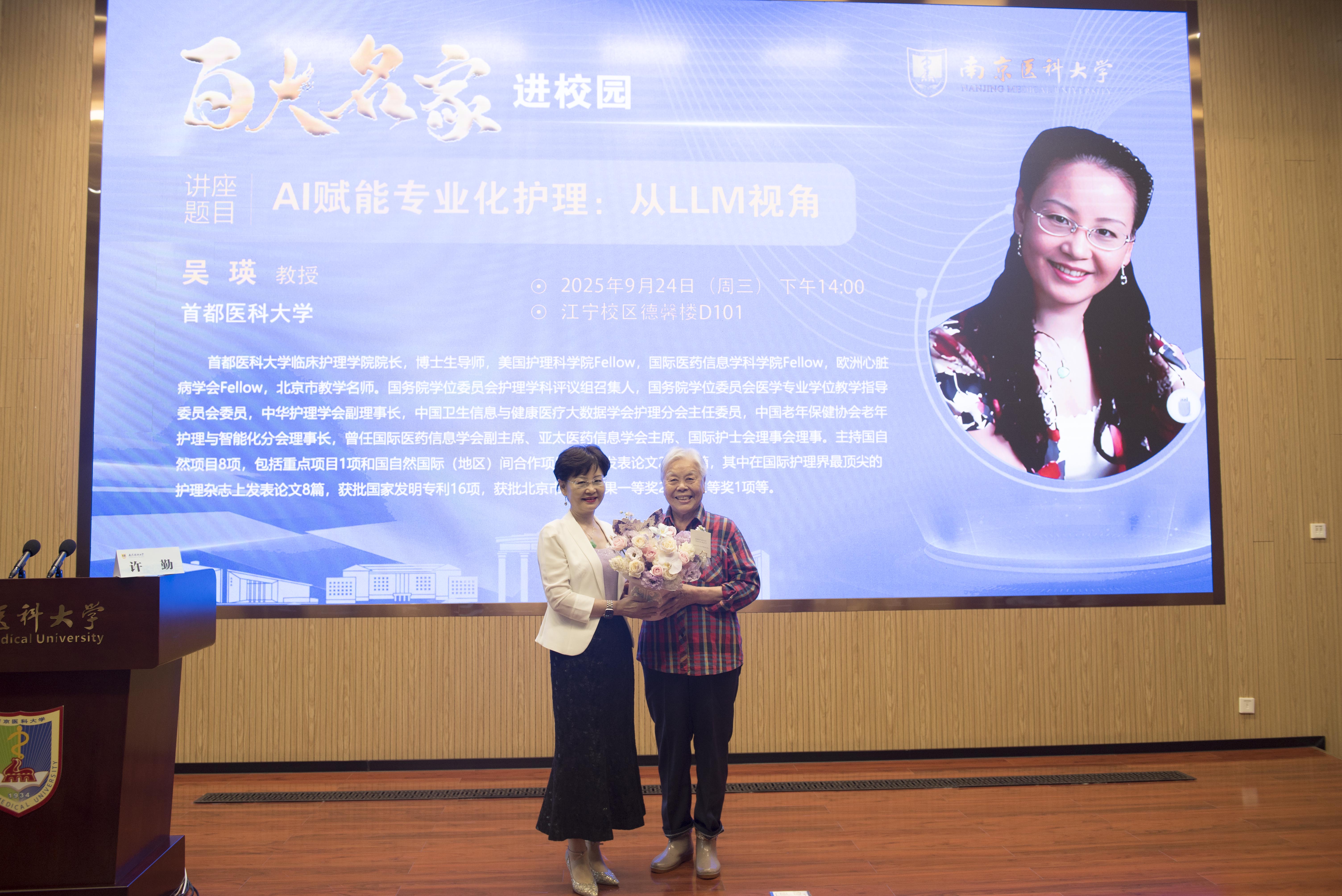 此次讲座为护理学科师生提供了前沿的AI应用视野。吴瑛教授以深厚的学术造诣和丰富的研究成果,系统阐释了人工智能赋能护理的技术路径与发展前景,为我院师生带来了一场高水平的学术盛宴。作为南京医科大学的优秀校友,她的到访不仅展示了人工智能与护理深度融合的学科前沿,也为推动我院护理学科的创新发展注入了新的启示与动力。
